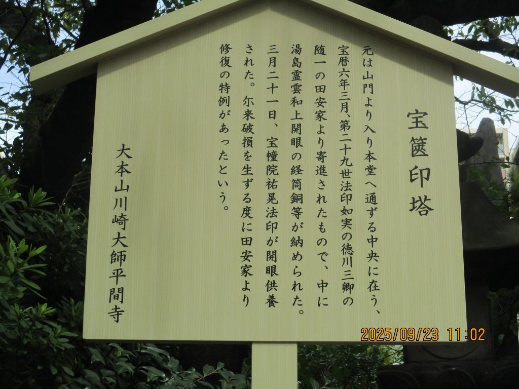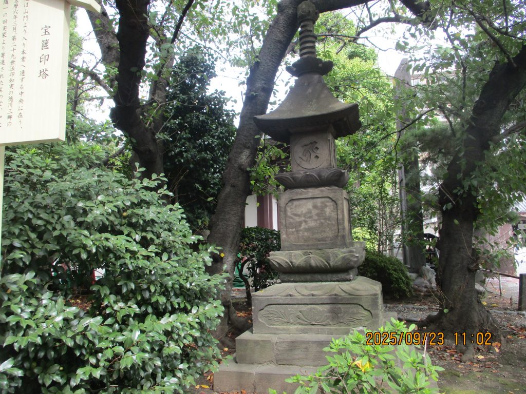 旧本堂の礎石や田安家より宝暦6年(1756)に寄進された宝篋印塔がありました。