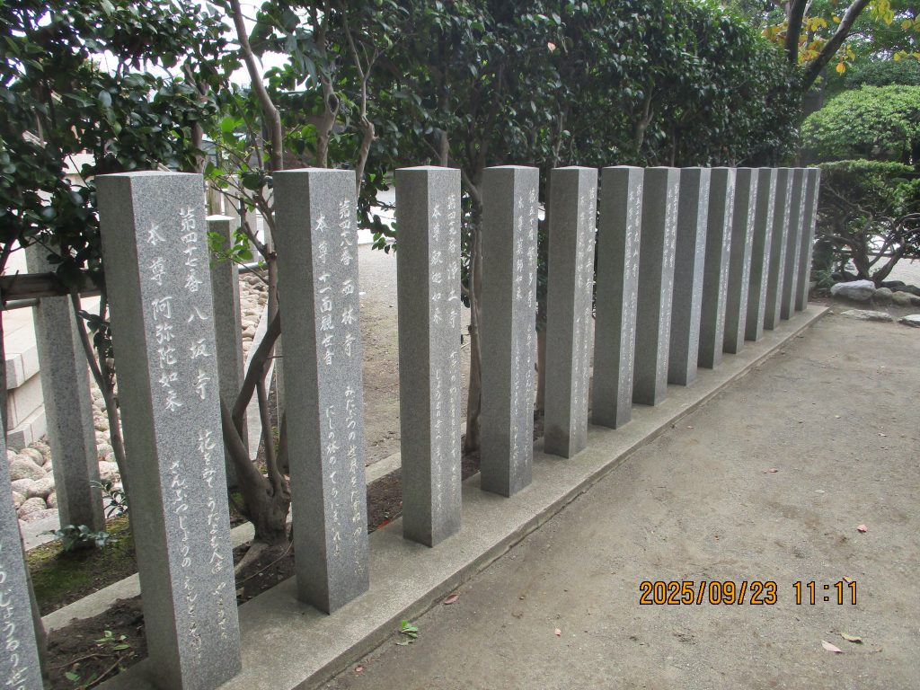 いろは歌頌徳碑があります。作者は弘法大師という説があるので建てられていて学僧から民衆にまで広がりました。