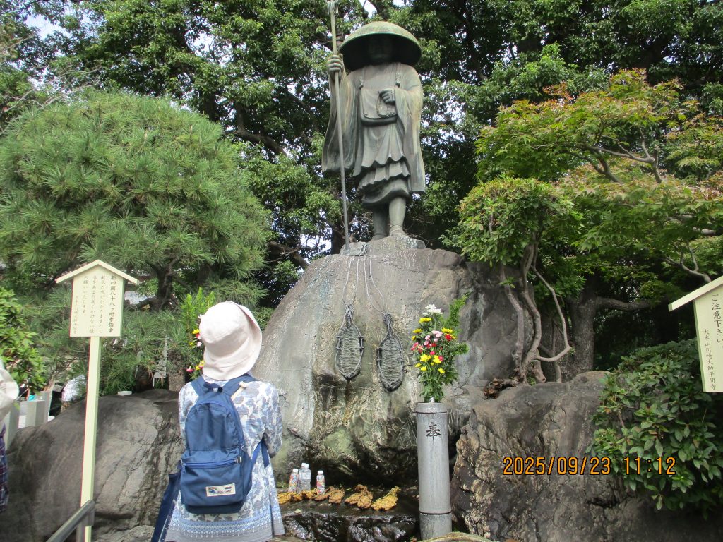 遍路大師像を見て四国八十八ケ所の砂が埋められている場所を巡りました。