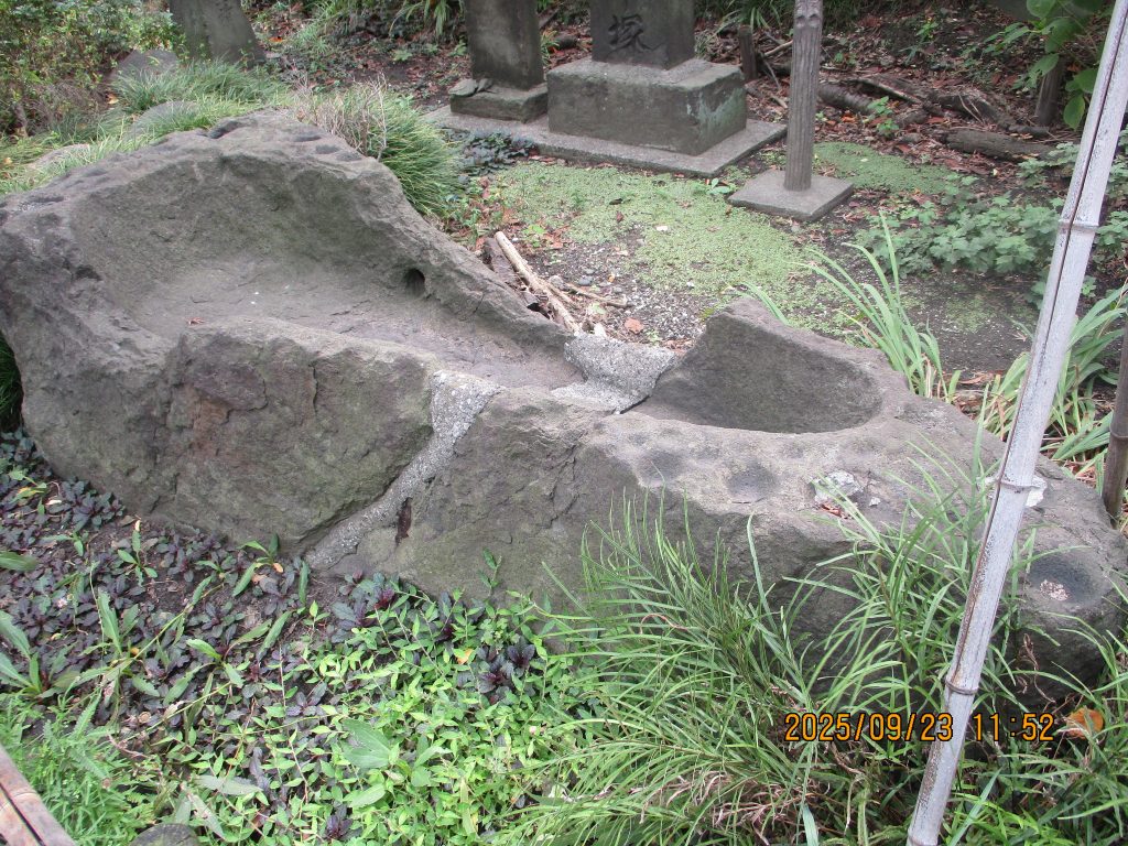 15分位歩き石観音堂に着きました。庭には地元の漁師が亀2匹の力を借りて海から引き揚げたと云われる霊亀石が手洗い石として置かれています