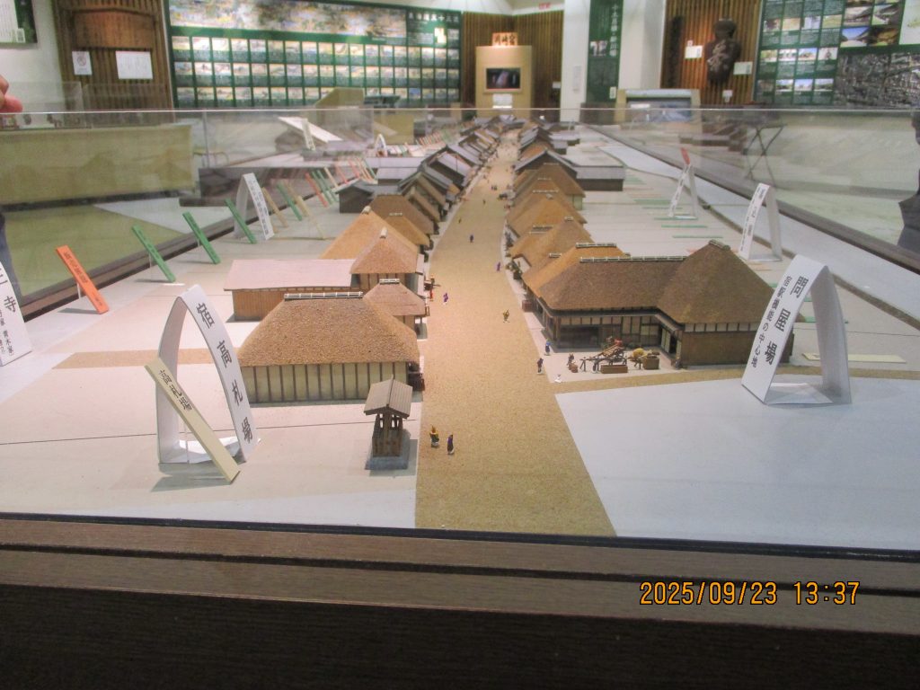 1時半頃に川崎宿交流館2Fに集まりました。展示室の宿場のジオラマが実に細かく造られて一番奥が多摩川の六郷の渡しとなっていました。