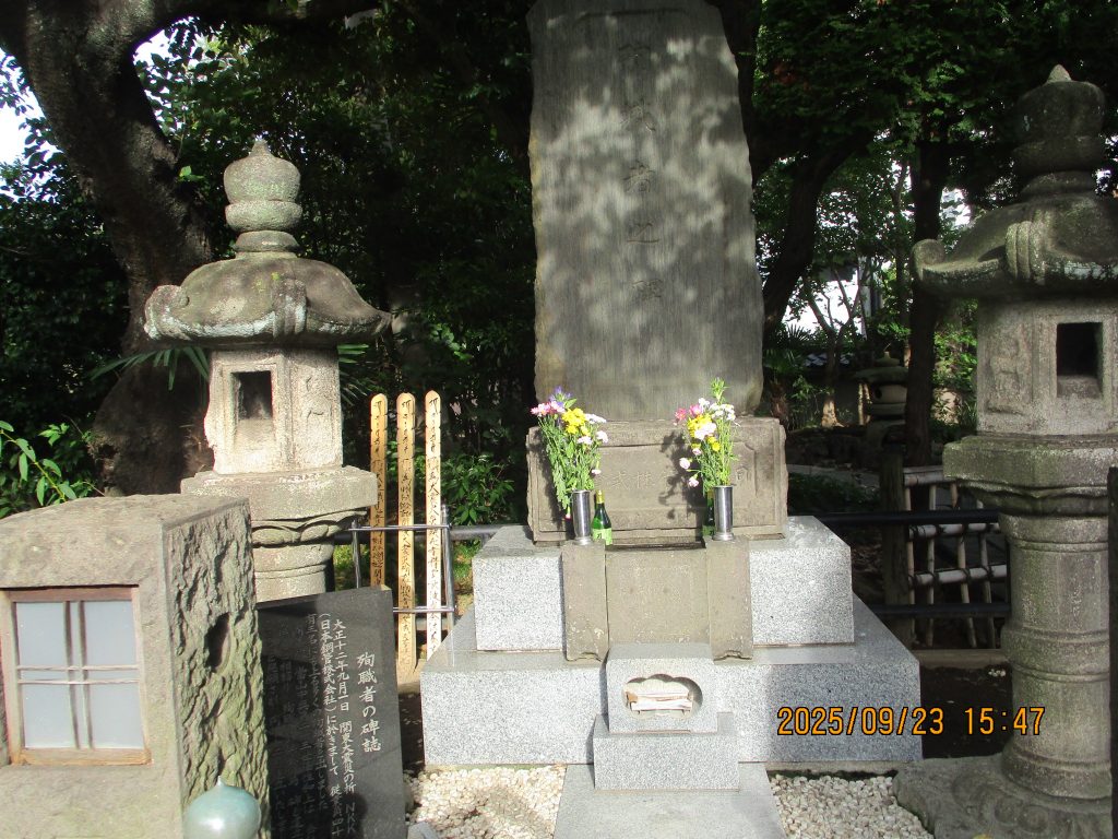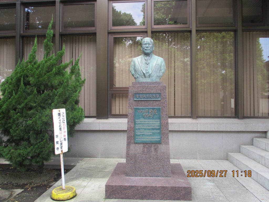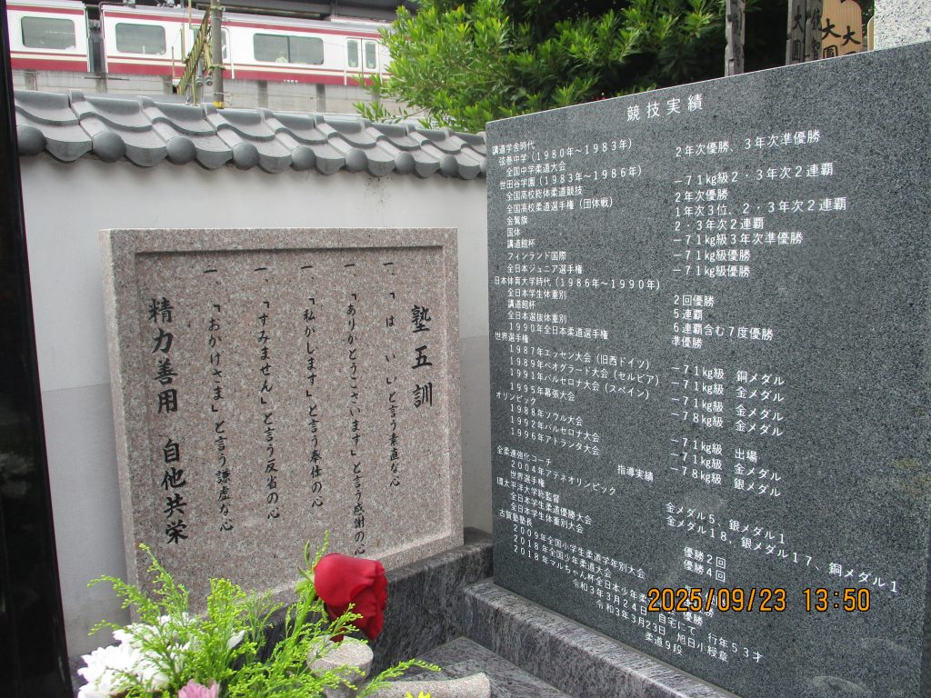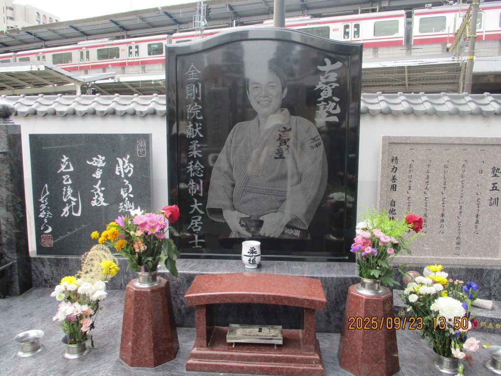 両氏の供養塔があり紋は四ツ目結いです。墓地を進むと奥に平成の三四郎こと古賀稔彦さんの墓がありました。バルセロナ・アトランタ・オリンピックの柔道金メダリストで令和3年に53歳で死去しました
