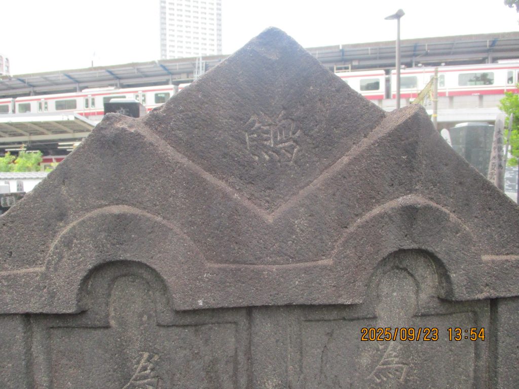 波多野家と青木家の墓石の頭部中央に謎の文字と云われる烏八臼(ウハッキョウ)字が彫られています。鷁は船首に付ける鳥で死出の船出を表すとの説があります