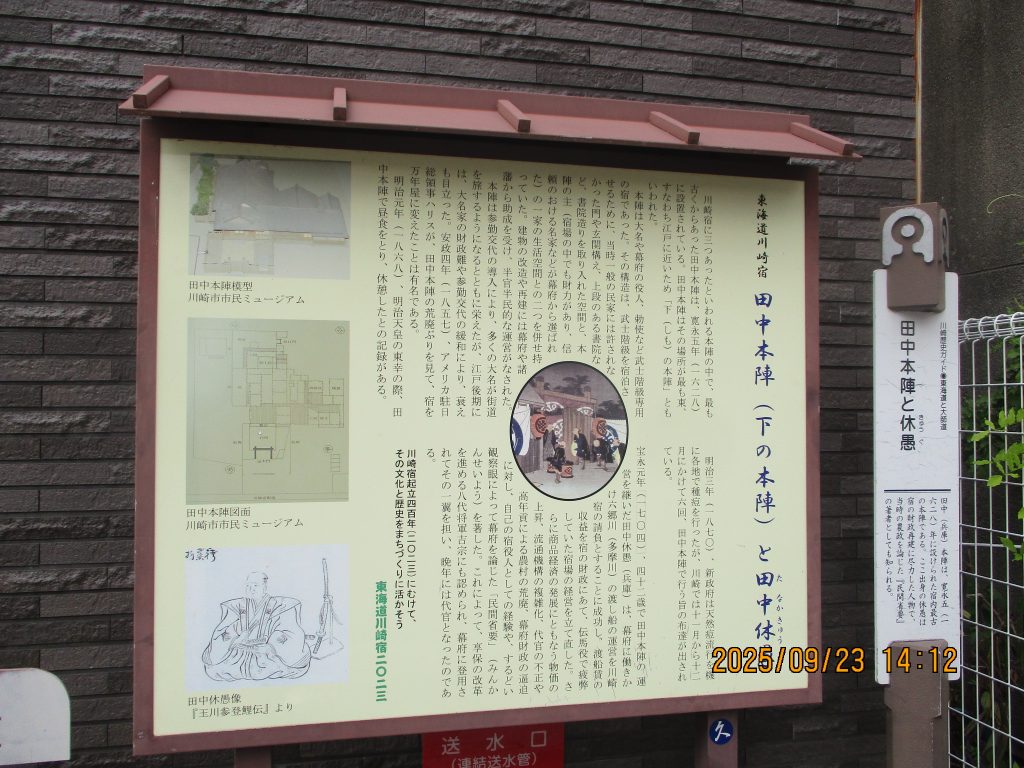 10分位進むと川崎宿本陣の田中本陣説明板がマンションの隅にあるだけでした。