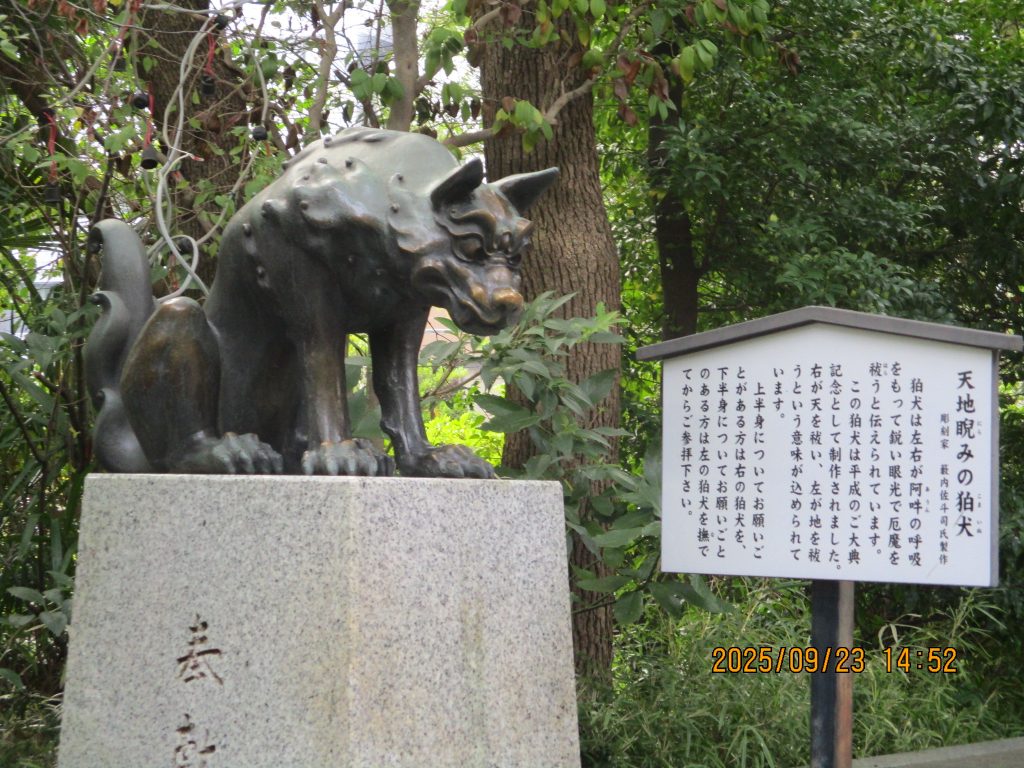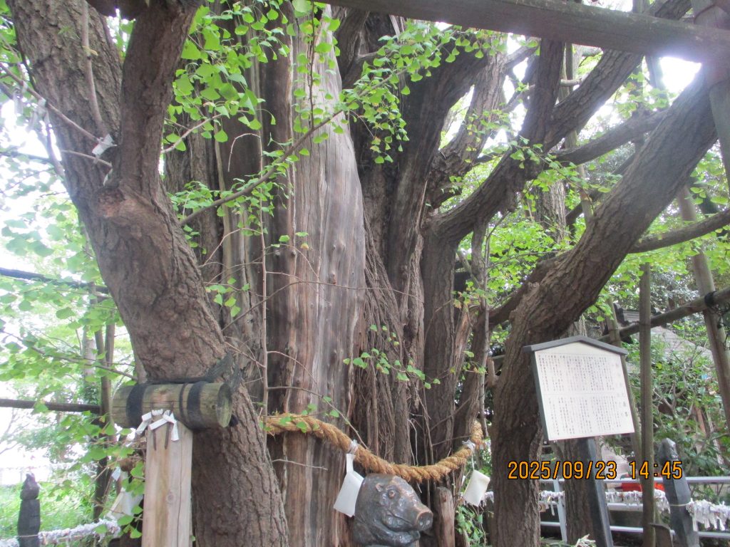 樹齢約1000年の大銀杏は神木で十二支巡りが出来ます。天地睨みの狛犬はとてもいかめしく怖い顔でした。右は上半身、下は下半身の願いをするとの事です。
