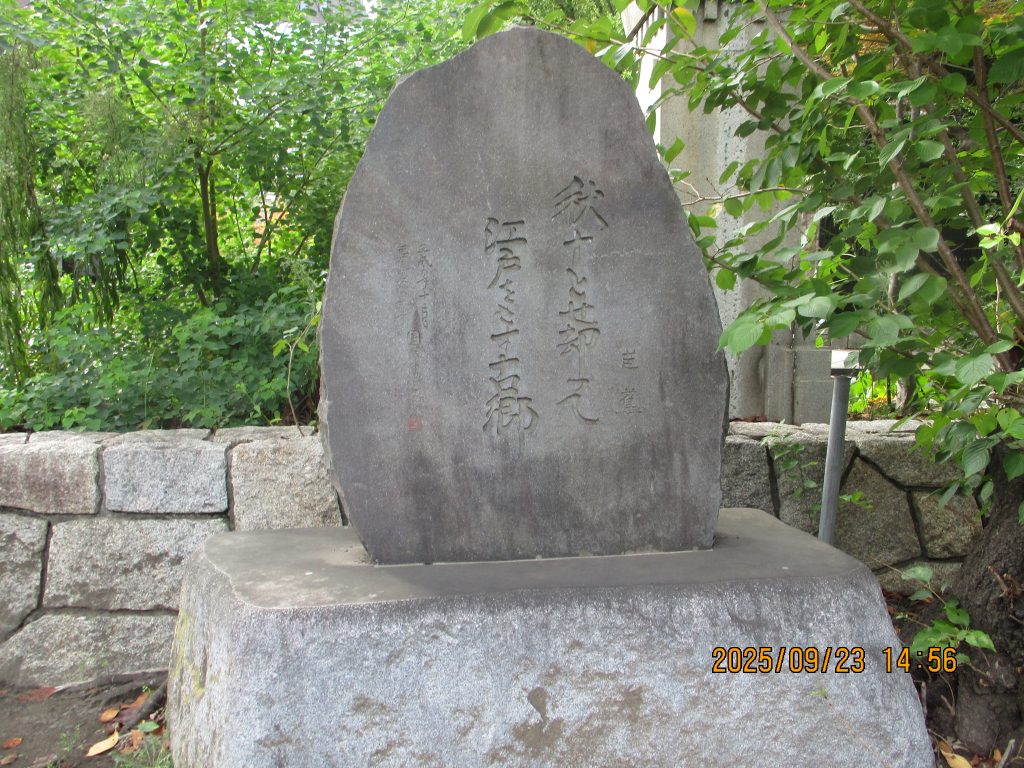 芭蕉句碑がここにもありました。江戸を発し伊賀上野に帰郷する時に詠んだ句です。「秋十とで却って江戸を指す故郷」。10年も江戸に住んでいると故郷のように思えるという意味です。