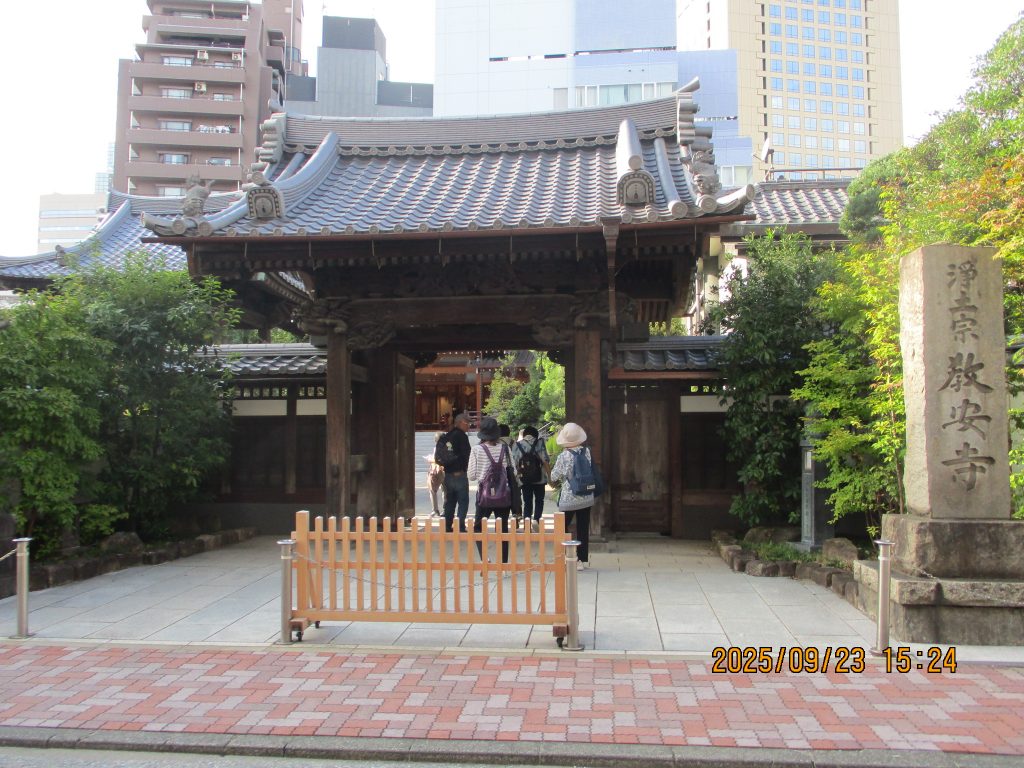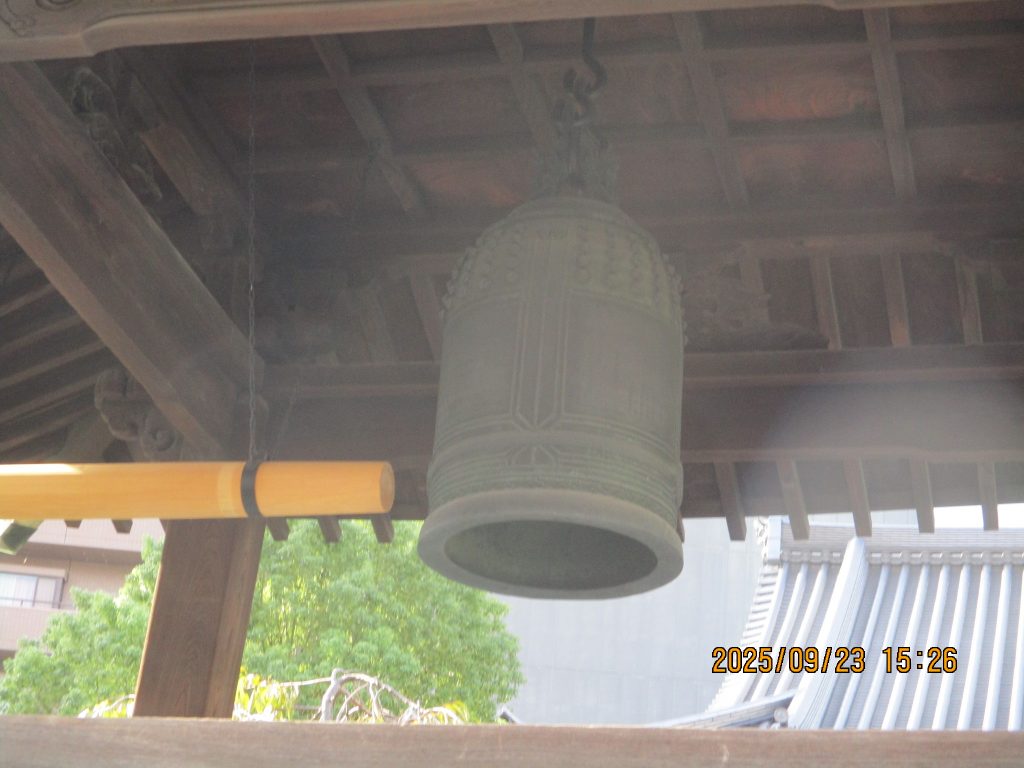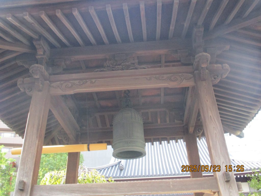 3時過ぎに浄土宗教安寺に入りました。こちらの梵鐘は空襲などを知らせるものでサイレンが破壊された時の備えとして金属供出を免れた江戸時代の鐘です。