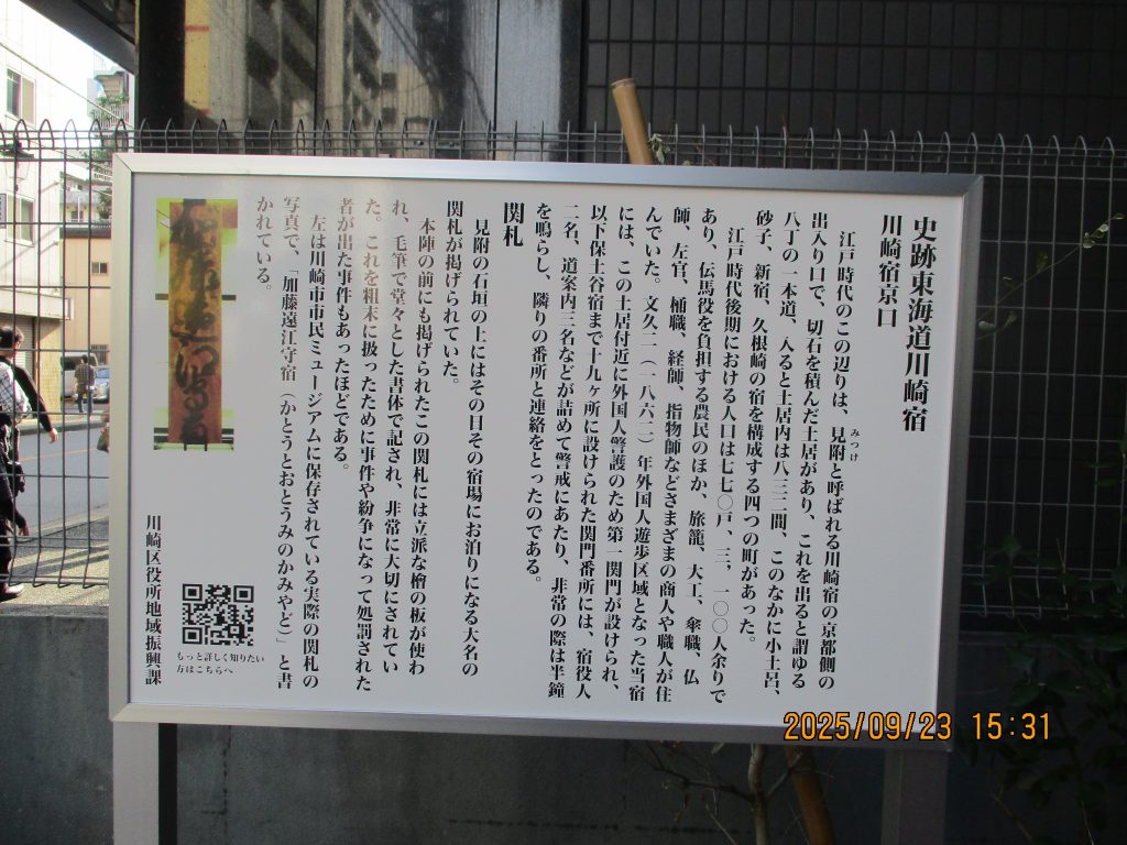 東海道川崎宿の西の京口に3時半頃に着きました。