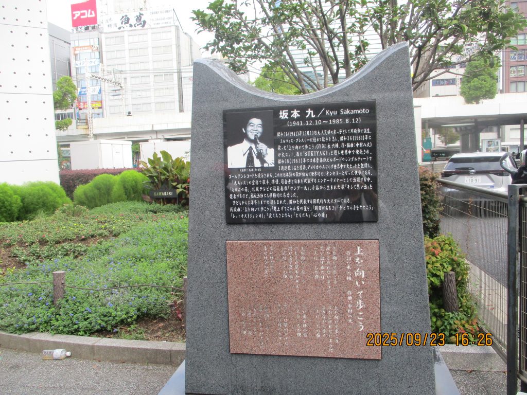 坂本九の笑顔の碑がありました。プロフィルを見ると「上を向いて歩こう」が聞こえてくるようです。1985年8月12日の飛行機事故で亡くなった日が思い出されます。