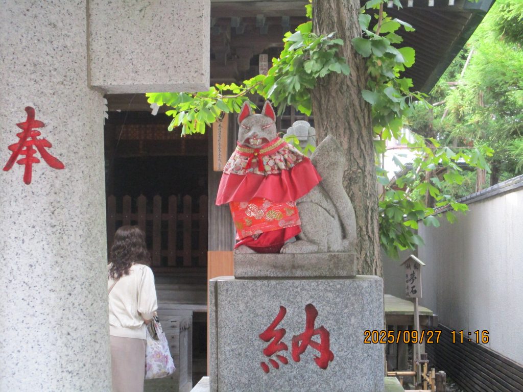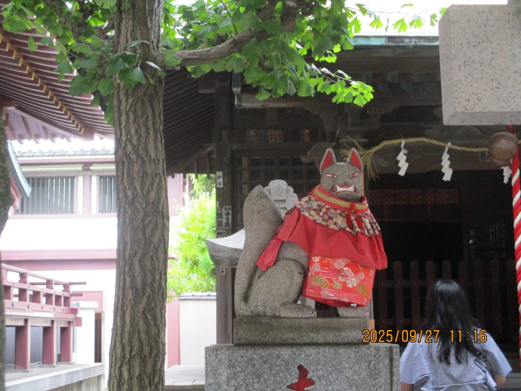 福徳稲荷堂は昭和20年4月15日の戦災を免れた唯一の堂でどうして焼失しなかったか疑問を抱きながらお狐さまのお力が働いていたのだろうかと眺めました