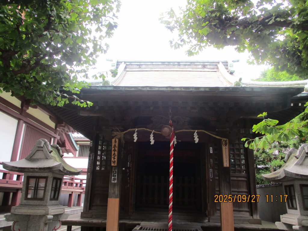 直ぐに稲毛神社に入りました。平安時代の河崎庄の鎮守です。鎌倉時代に佐々木四郎高綱が頼朝の命を受け社殿を造営したとの事です