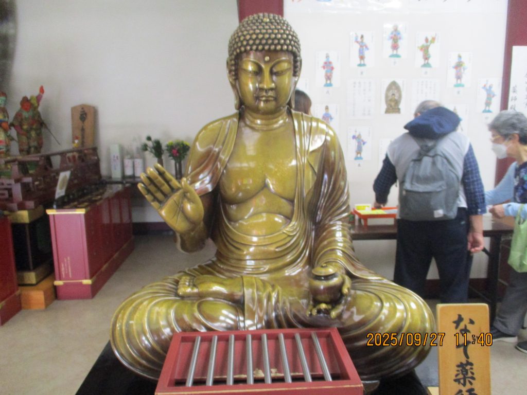 最後に白いインド風建築の薬師殿に入りました。平成20年の建立で「なで薬師」があり御利益を信じ撫でさせてただきました。