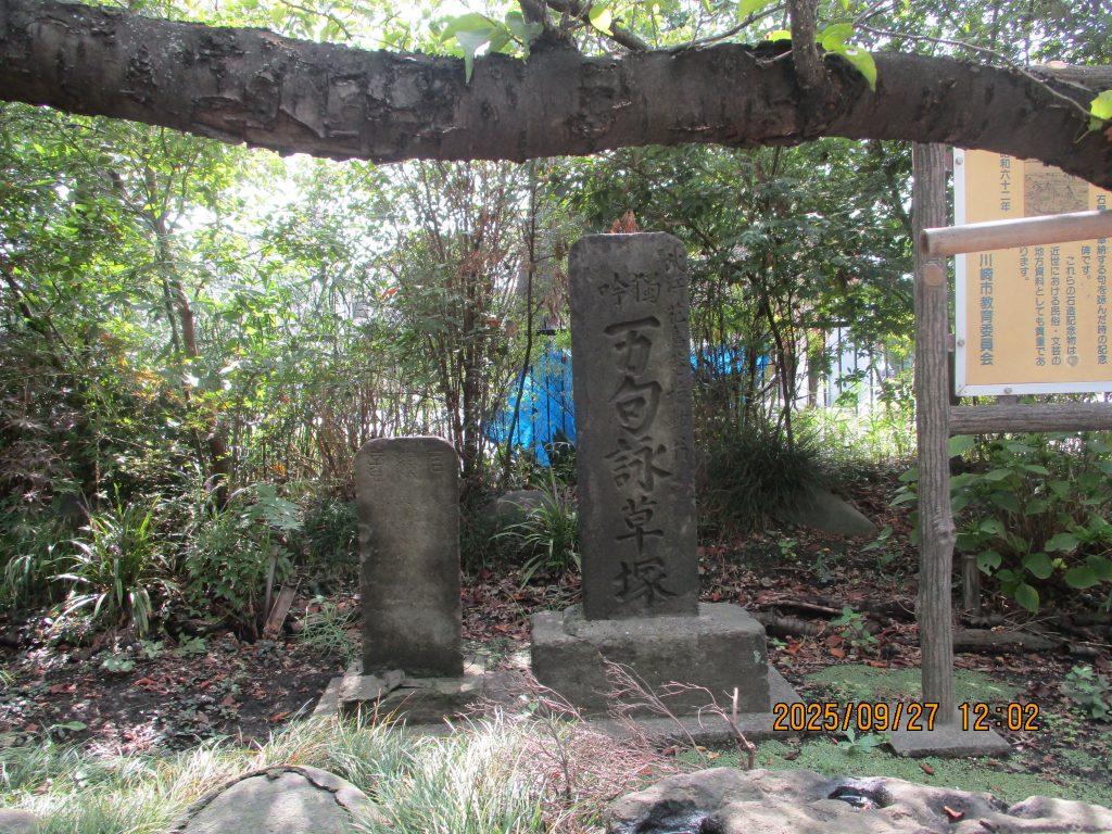 一定の時間の内に数多くの句を詠む事を記念した梅動独吟万句詠草塚がありました。