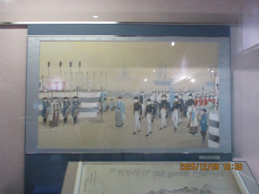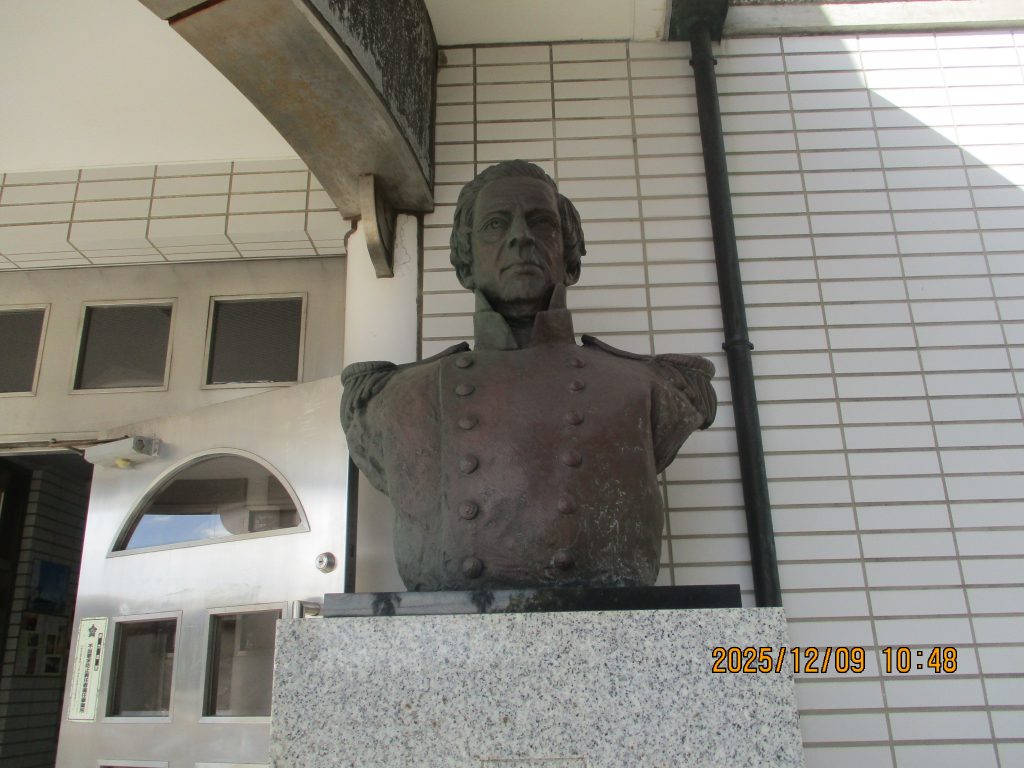 ペリー来航100周年を記念して昭和28年に公園を整備しました。嘉永6年(1853)7月4日に伊豆沖に現れたペリー艦隊は7月14日に久里浜に上陸しました。艦から13発の祝砲が放たれ軍楽隊がアメリカ国歌を吹奏したとの事です。ペリーは隊列を組み応接室に入り国書と信任状を開き日本側に渡し日本側は国書を受け取ったとの受領書を渡しました。ぺリー記念館の玄関にはぺリー像と戸田伊豆守氏栄像が置かれてます。