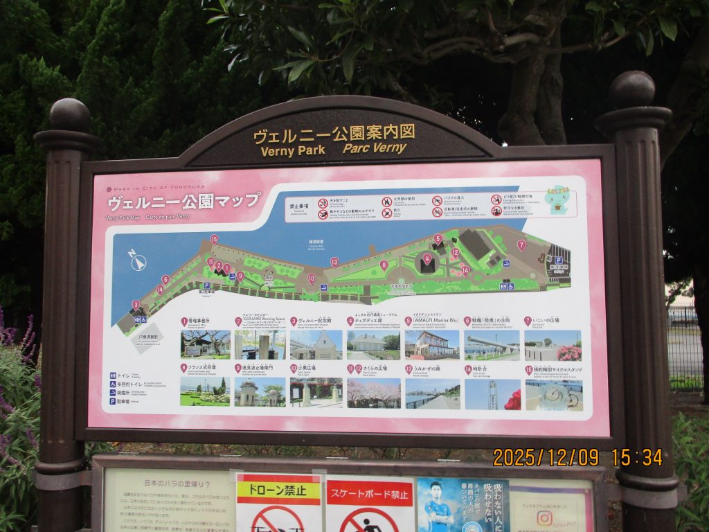 15時頃にヴェルニー公園に入りました。横須賀港の目の前に造られたフランス式庭園様式を取り入れて公園で薔薇が終わりかけていました。軍艦長門碑や正岡子規の句碑を見ながら奥に進みました。